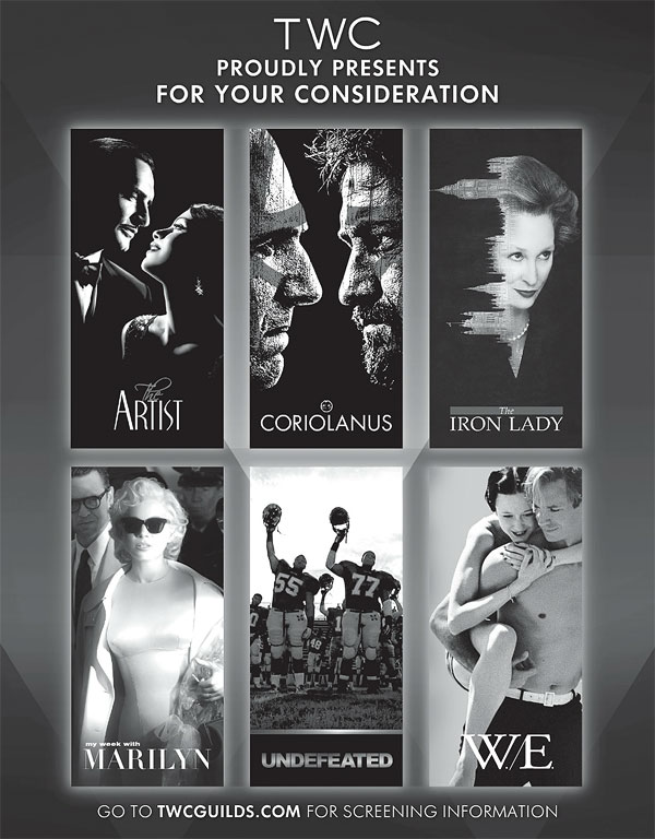 Features: The Artist, Coriolanus, The Iron Lady, My Week with Marilyn, Undefeated, W.E.