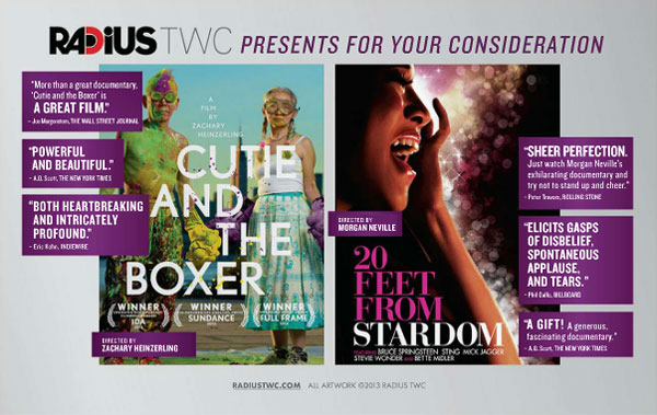 Features: Cutie and the Boxer, 20 Feet from Stardom
