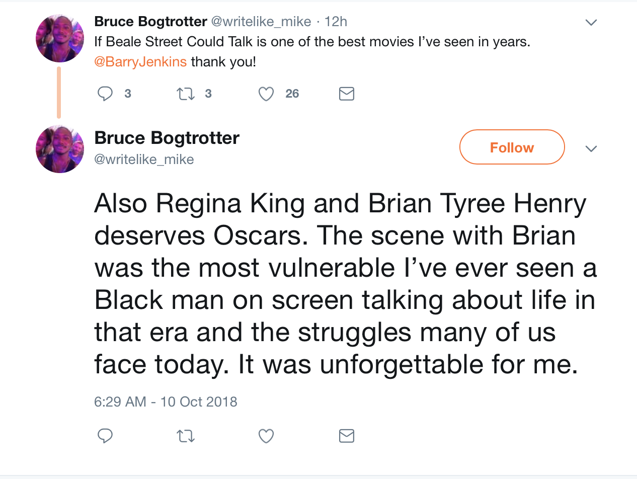 Beale Street is being talked about as a film that depicts black culture in America the way few films have. It’s interesting to see that two films in the race are love stories. A rarity in the Best Picture race.