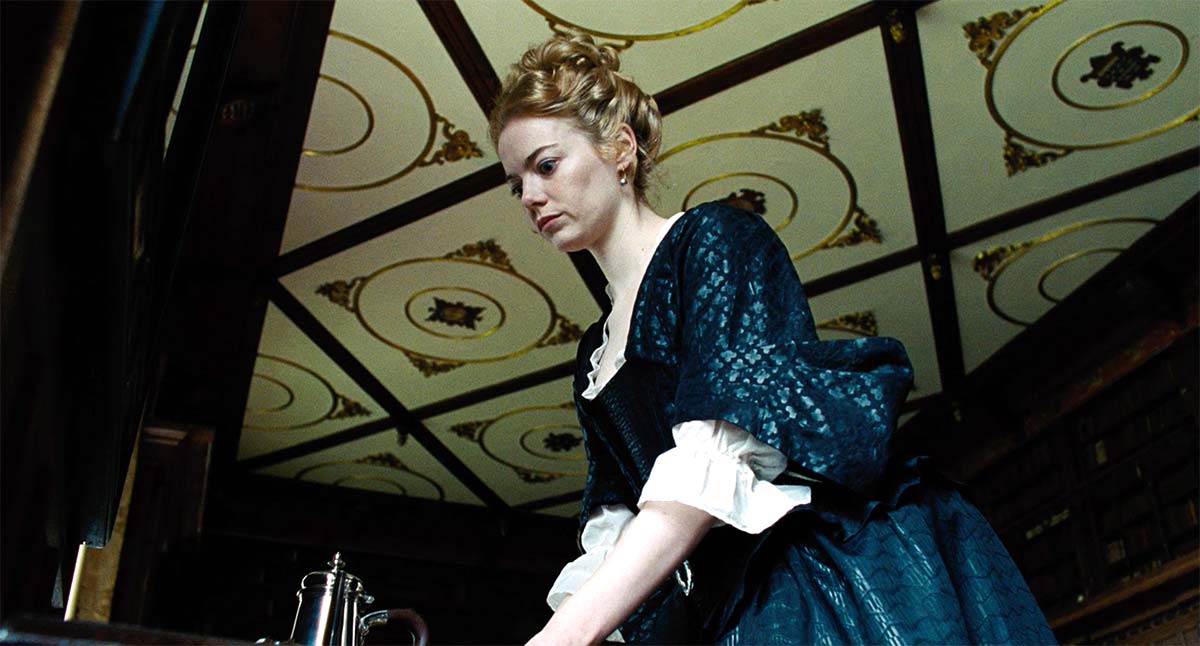 Yorgos Lanthimos and production designer Fiona Crombie chose the location for The Favourite, transforming it into the locale for Queen Anne’s court. Crombie collaborated with the costume department to set her palette. She also stripped out much of the original furnishings, built extra panels, secret doors, and additions as part of the magnificent regal transformation. Crombie says she noticed there was a lot of black, white and gold, and that’s why much of her palette was based on that.
