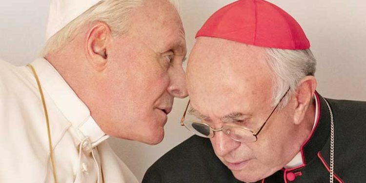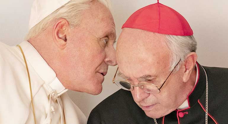 They’re both alive, and it’s the first time in 500 years that we’ve had two living popes. One is a dry, conservative and bookish man lacking in charisma. He has no record of humor. The other is a joke-telling, ex-club bouncer, football-loving man of the people. The seeds of comedy were there too. There was a chance to bring them in intimate, and that’s what I love to do. I could combine comedy and epic.