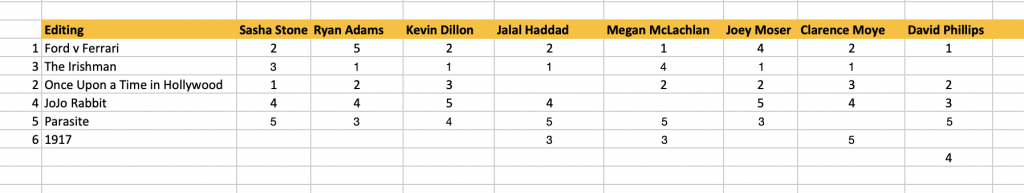 Do we have any other movies lurking that could be the sneak attack as the winner? Could Ford v Ferrari surprise everyone by being the kind of crowdpleaser that the consensus overall broadly likes?