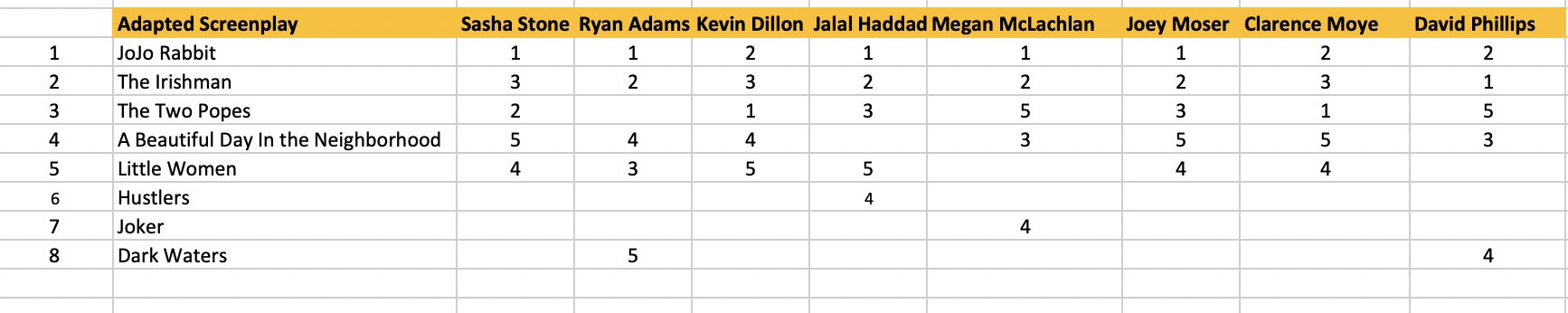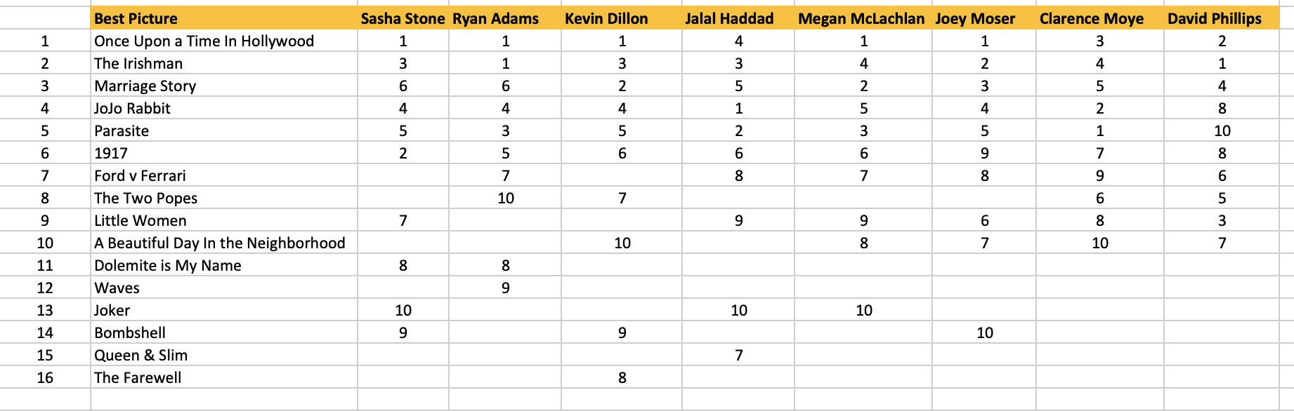 Do we have any other movies lurking that could be the sneak attack as the winner? Could Ford v Ferrari surprise everyone by being the kind of crowdpleaser that the consensus overall broadly likes?