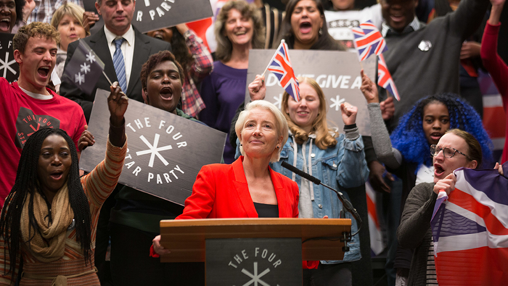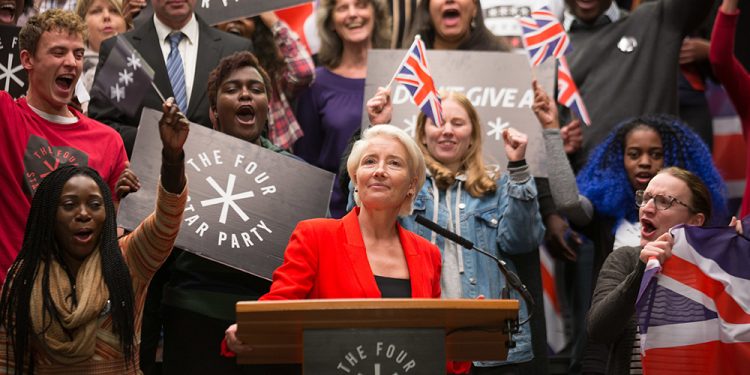 Even Vivian Rook, a wealthy political novice who makes politically incorrect statements (re: Donald Trump), is unclear as a character. Thompson isn’t actually in the series that much, and what she is saying about society and what she wants to do with it is left very opaque beyond that she doesn’t like the current system. That’s likely the point, of course. She serves here as a bit of a political clown, disrupting and damaging the world in the long run. Still, she feels less shocking on screen with Trump as President and Boris Johnson as Prime Minister. Compared to real life, she’s really not that hard to swallow.