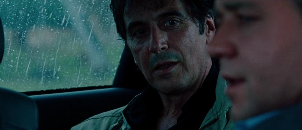 It’s hard to overstate just how good Crowe and Pacino are here. Crowe was on a magical ten-year run that started with L.A. Confidential and concluded with American Gangster in 2007 (sandwiched in between were The Insider, Gladiator, A Beautiful Mind, Master & Commander, Cinderella Man, and 3:10 To Yuma). Yet, I would contend he was never better than he was as Jeffrey Wigand. It’s a deeply internal performance of a man under enormous pressure, who can see the easy way out before him but his conscience simply won’t let him take it. Crowe transforms himself by graying his hair and adding a few pounds, but it’s the deliberate nature of his speaking cadence that I found most compelling. Rarely speaking above a whisper, he is incredibly economical with his words. He is both sure of what is right and terrified that acting as he must will bring him no benefit, or even harm. Wigand seems an exceedingly difficult man. He is not warm, he is not friendly, but he is courageous in a way few of us could hope to be.