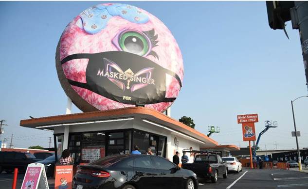 Given the inability to host the FYC gatherings that have become so prevalent in awards season, several Emmy-contending series are relying on creative new ways to get their name out there. FOX’s The Masked Singer is masking a host of iconic LA-area locations. Fans can drive by to grab quick pix and maybe even a free goodie! You can visit all three from a safe social distance until 8/31.