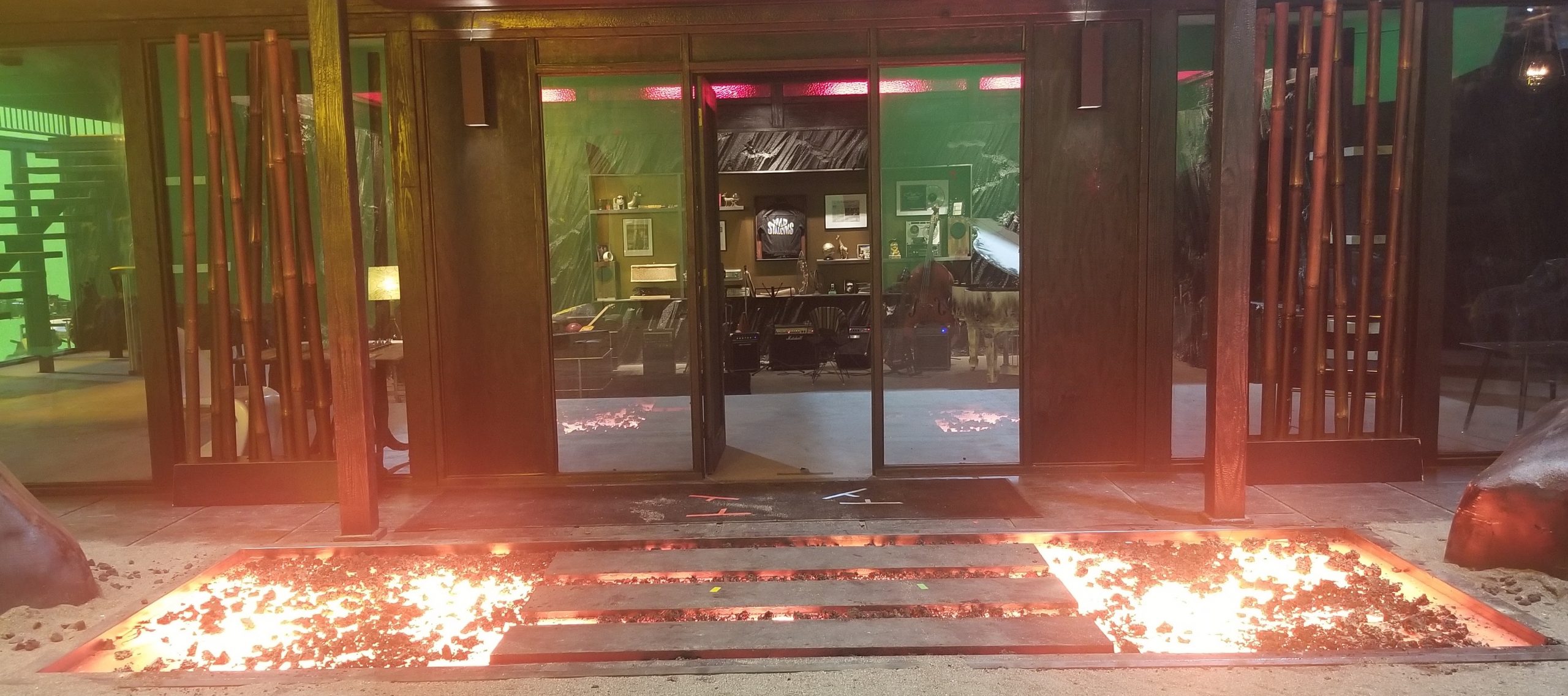 The irony of this mid-century hell estate is that it’s built out of wood. Naturally, the wood boasts a burnt texture. Because, you know, it’s hell. The house also offers a lava-filled koi pond.