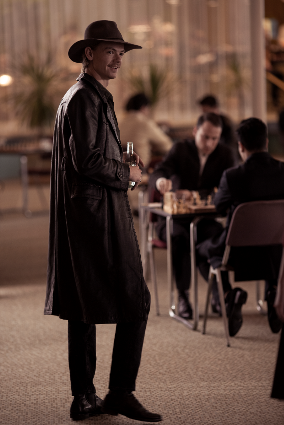 TBS: When you first meet him, he’s this cocky, arrogant guy, but as the series progresses you realize how much he actually does care about her. He genuinely sees the raw talent within Beth and her potential to go far. He is also so in love with chess and he sees the potential for not just an American to take on the Russians but a woman. She’s a young girl, and I think that excites him. Like Beth, Benny doesn’t really fit into this world. He just sees her going down this self-destructive path and it frustrates him not only for herself but for the world of chess. For the Americans to the Russians during the Cold War. It’s frustrating when you see someone with obvious talent and you see them throwing it away. It comes from a caring place for her and she has the opportunity to put American chess on the map. And women on the map too. It comes from a well-rounded perspective.