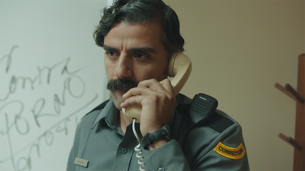 A mustached Oscar Isaac plays Richard, a corrections officer who is finally offered a new position in the communications department at the prison. He is now tasked to open all the incoming mail for inmates and make sure there are no coded messages for violence and he must destroy any kind of pornography. Whether or not this is what Richard had in mind, he takes it in stride and dives in. Richard becomes fascinated with the letters from a young woman named Rosita. Her prose takes Richard by surprise, but he is more frustrated that its recipient, an angry inmate on death row, doesn’t reciprocate by writing back.