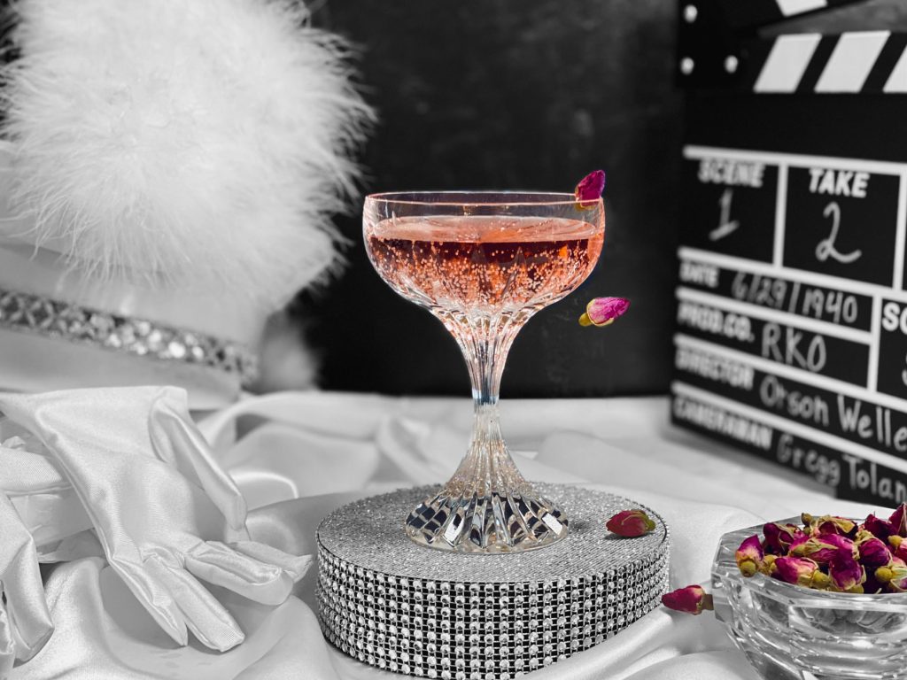 A cocktail inspired by Marion Davies’ nickname, given to her by William Randolph Hearst and made infamous with a line from the film “Citizen Kane.” This classic gin-based champagne cocktail calls back to Old Hollywood with the addition of rose liqueur for a nod to Davies’ nickname. A rosewater spritz completes the fantasy to the iconic silver screen-style cocktail inspired by this 10-time Oscar-nominated film.