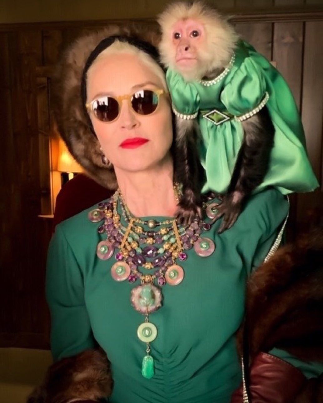 CC: I’ll tell you the truth I was away for two weeks getting married in Austin when Sharon Stone started working. My second in command was in charge of all things Sharon. I was kept in the loop with those conversations with her. But Sharon was a hairdresser at one point, and she really drove that design. At one point, the hair was either all black or it was white. It was all a collaboration with Sharon and the costume designers because we had to plan hairstyles around the hat. And around the monkey. The monkey really liked to touch that wig. So there was a lot of maintenance on her throughout the day. But that design was really driven by Sharon. I have to give her credit for that.
