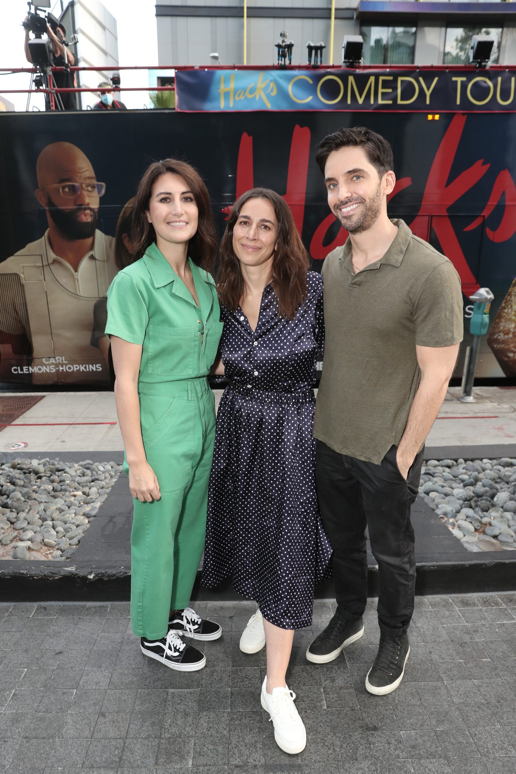 HACKS — “‘Hacks’ Comedy Tour” — Pictured: (l-r) Jen Statsky, Creator / Executive Producer; Lucia Aniello, Creator / Executive Producer; Paul W. Downs, Creator / Executive Producer in Hollywood, Calif on August 14, 2021 — (Photo by: Todd Williamson/HBO Max)
