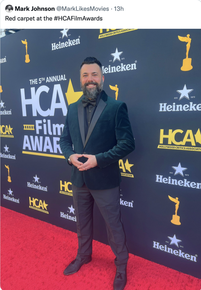 I’m not sure what it means exactly in the grand scheme of things, and ordinarily, I would not post about the HCAs, given that. But our very own Mark Johnson and Clarence Moye are members, along with our friends Jazz Tangcay, Landon Johnson, Karen Peterson, Scott Menzel, Will Mavity, Erik Anderson, and Erick Weber. Scott Menzel runs the whole thing with his wife Ashley. Film Twitter is, for the most part, a truly terrible hive, but these folks are Film Twitter’s better half, I’d say.