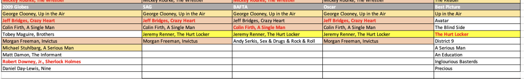 I have not factored in the Critics Choice because they don’t have a reliable recognizable pattern where Best Actor is concerned. They are hit and miss in terms of matching.