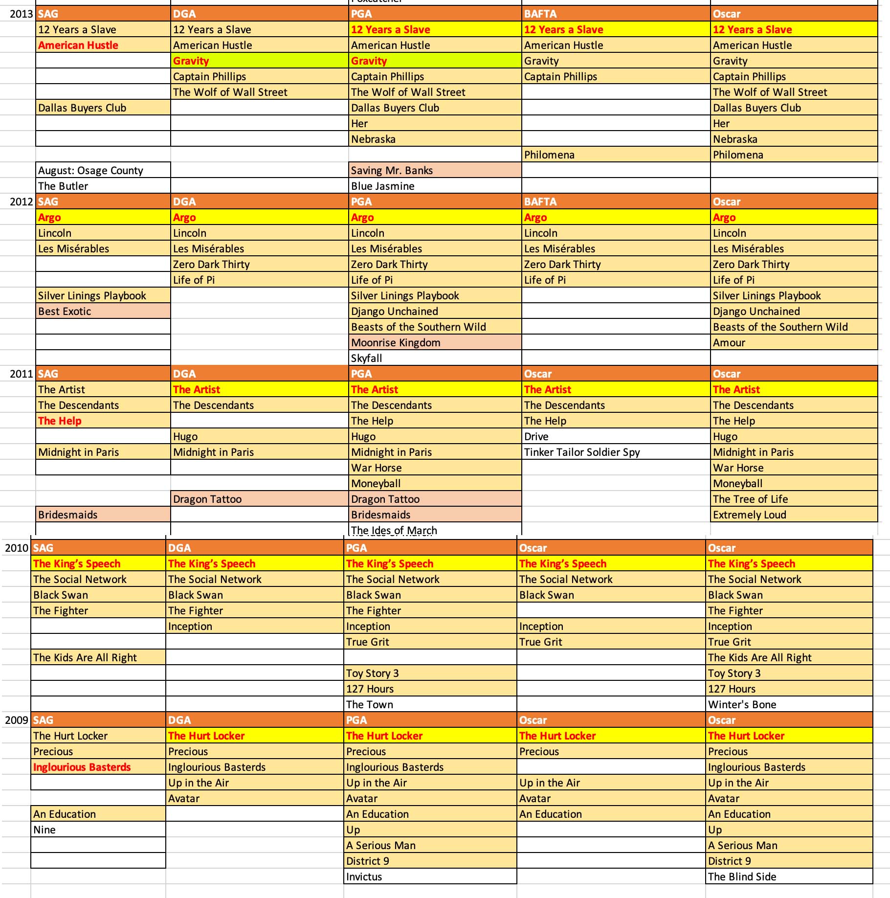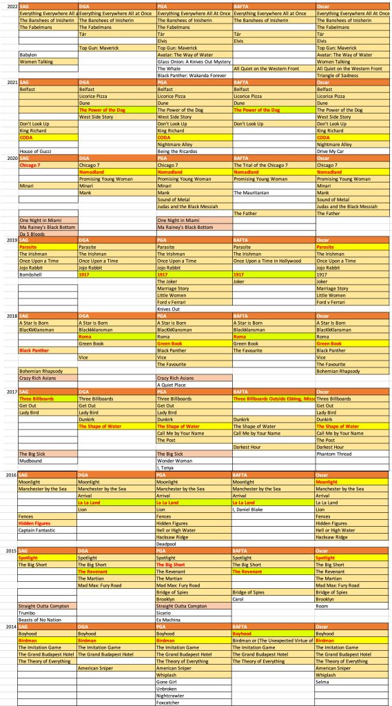 And that’s it. So if Everything Everywhere take the PGA and the SAG it won’t matter what wins the DGA or the BAFTA or anything.
