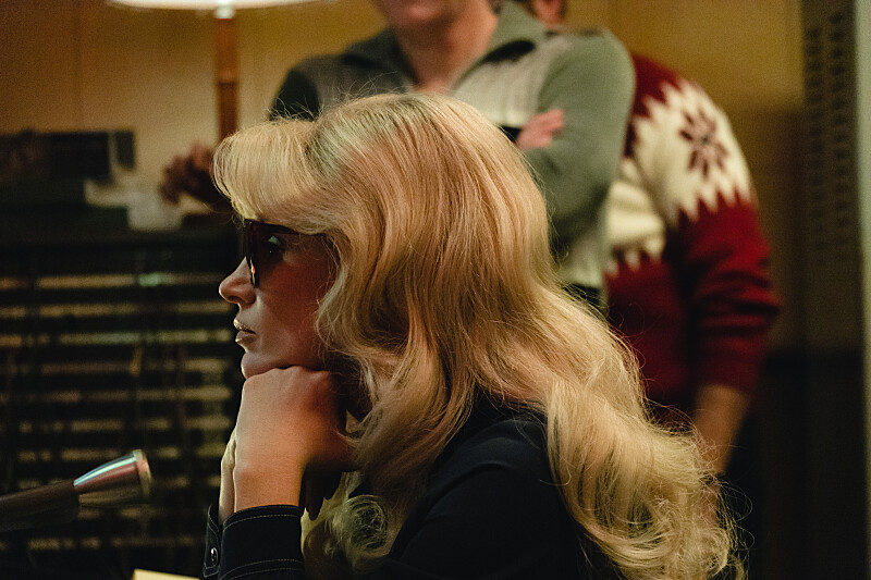 Jonah Markowitz: They were celebrities, so there is definitely that level to it. I don’t know why America is so binary between country and rock. We’ve become so binary about so many things. I think it’s changing a little bit and people are seeing country now and discovering country, people that weren’t before. There was definitely a level of glamor, a different sort of glamor—Nashville glamor, that is just as showy and beautiful but a little more humble. I know it’s a contradiction, but it just sort of felt that way. One place we really leaned into glamor and glitz and sparkle and shine was in Vegas. And again, that wasn’t just because they were in Vegas. It was because in that scene, Tammy shows up there…she’s at the height of her career, and he doesn’t show up. He abandons her. So we played with scale a lot there. We made that set of her hotel room absolutely enormous. I just wanted her to feel so small in that moment. For this larger than life, big personality with big hair, on stage with lights, with stadiums full of people to be in front of Vegas in the biggest penthouse imaginable–much bigger than they would’ve been in in reality as we learned–to just show her as tiny among these forces that were so much bigger than her. We leaned into that glitz and glamor, but really that’s not what was in their hearts, so it was interesting to play with the differential between those two things.