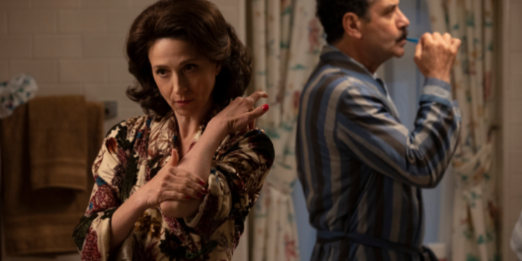 We get to see Rose in one flash forward, and she is filming a commercial for her matchmaking business (the ludicrously fun Rose Weissman’s One Plus One Equals Love Romance Emporium, to be exact). The camera crew is tired, and we can see that Rose is insecure with her blocking and having all of those eyes on her. We rarely see Rose embarrassed in front of such a crowd, and it’s a lonely moment for her. Tony Shalhoub’s Abe isn’t there to offer guidance, and we get a sense of how adrift Rose must feel.