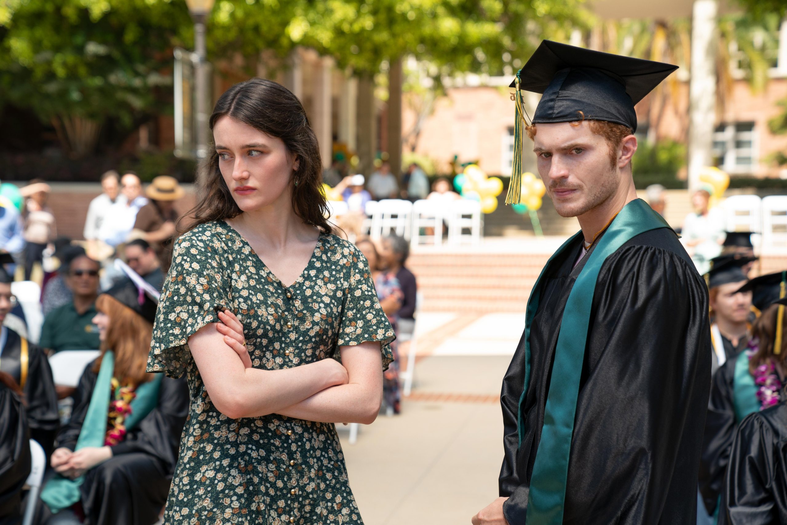 I love that suit too, so I would take it. It almost didn’t make it. Kathryn and I were desperate to find a place, and when we realized it could fit in the graduation scene, we were so happy.”