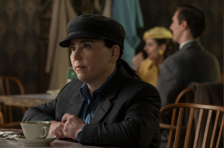 “A lot about the scripts and what was coming was new to me–it really was a surprise,” Borstein says. “Rachel [Brosnahan] had more sit downs with Amy [Sherman-Palladino] and Dan [Palladino] to talk about the trajectory, and they would give her drips and drabs. I never knew anything, but I did know that Susie was in over her head a bit with the mob. Susie isn’t even sure if she can trust herself, and there is a slight bit of terror that Susie is feeling in that moment. She probably hasn’t ever had anyone’s complete trust before, and she doesn’t know if she deserves it. This is the greatest love of Susie’s life, and to have someone say that to you is a big deal. Especially Susie.”