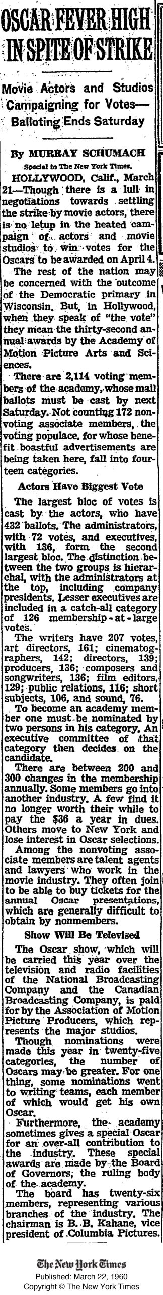 Here is a story from the New York Times archive about the Oscars and the strike:
