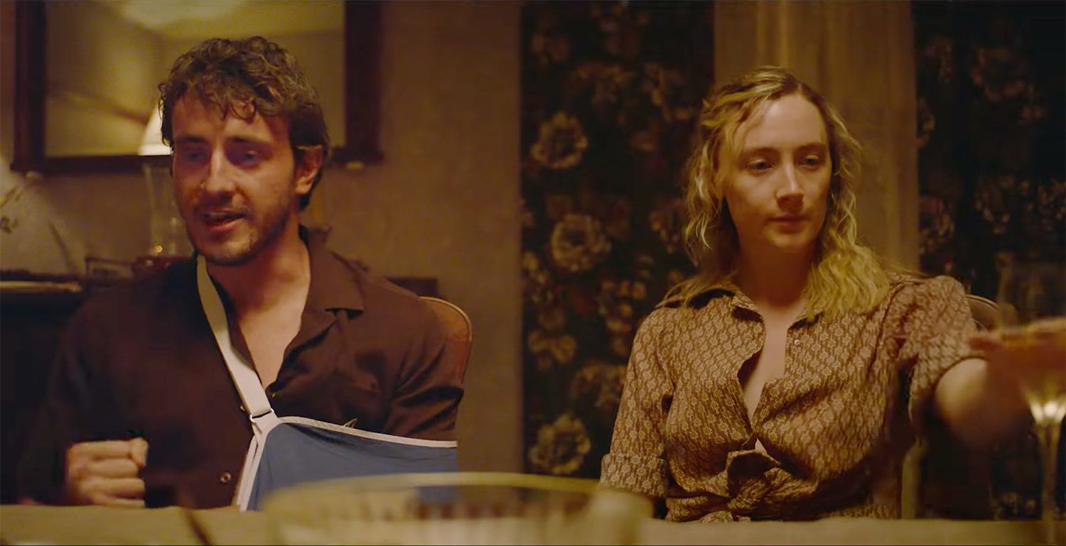 Being the only two people they see day in, day out, their marriage is tense, both Hen (Ronan) and Junior (Mescal) exhibiting control issues that, were they not still capable of showing affection to each other, might have torn them apart long ago. Their story initially appears to be one about the status of human relationships our species might experience should climate change force us into living situations we today would deem unreasonable. That starts to change with the arrival of a lone stranger, Terrance (Aaron Pierce), who says he works for the government and is recruiting candidates to help build a massive space station that a significant portion of the human population will soon call home. The catch is that only Junior will go, leaving Hen with a supposedly rudimentary clone of her husband for the duration of his duty.