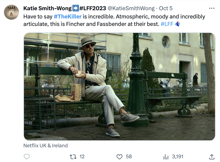 Has David Fincher let Michael Fassbender take him on a drive?#LFF #TheKiller pic.twitter.com/7RgS1O3U9e