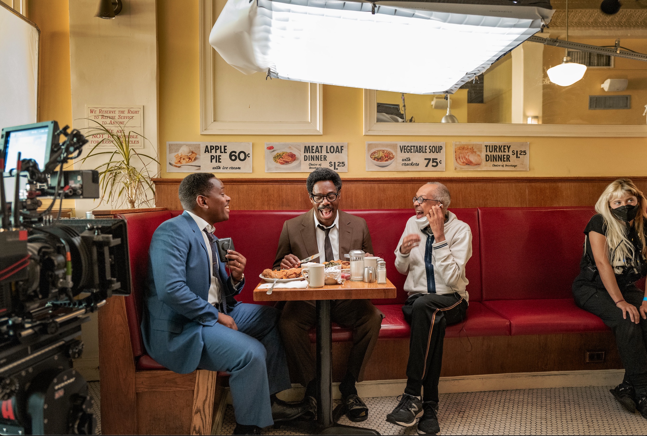 Aml Ameen: You never know what things are going to do, right? I think that the film’s taken on a life of its own. Look at those involved: Higher Ground–this is the Obamas’ first venture into narrative storytelling. George C. Wolfe, who I love as a filmmaker–I loved Ma Rainey’s Black Bottom. Colman Domingo, Jeffrey Wright, Chris Rock, Glynn Turman, Michael Potts. You know, everybody. The Avenger team has been called. And there’s this new kid on the block, Spiderman, Aml Ameen. (Laughs). And they’re going all right kid, let’s see what you got, man.