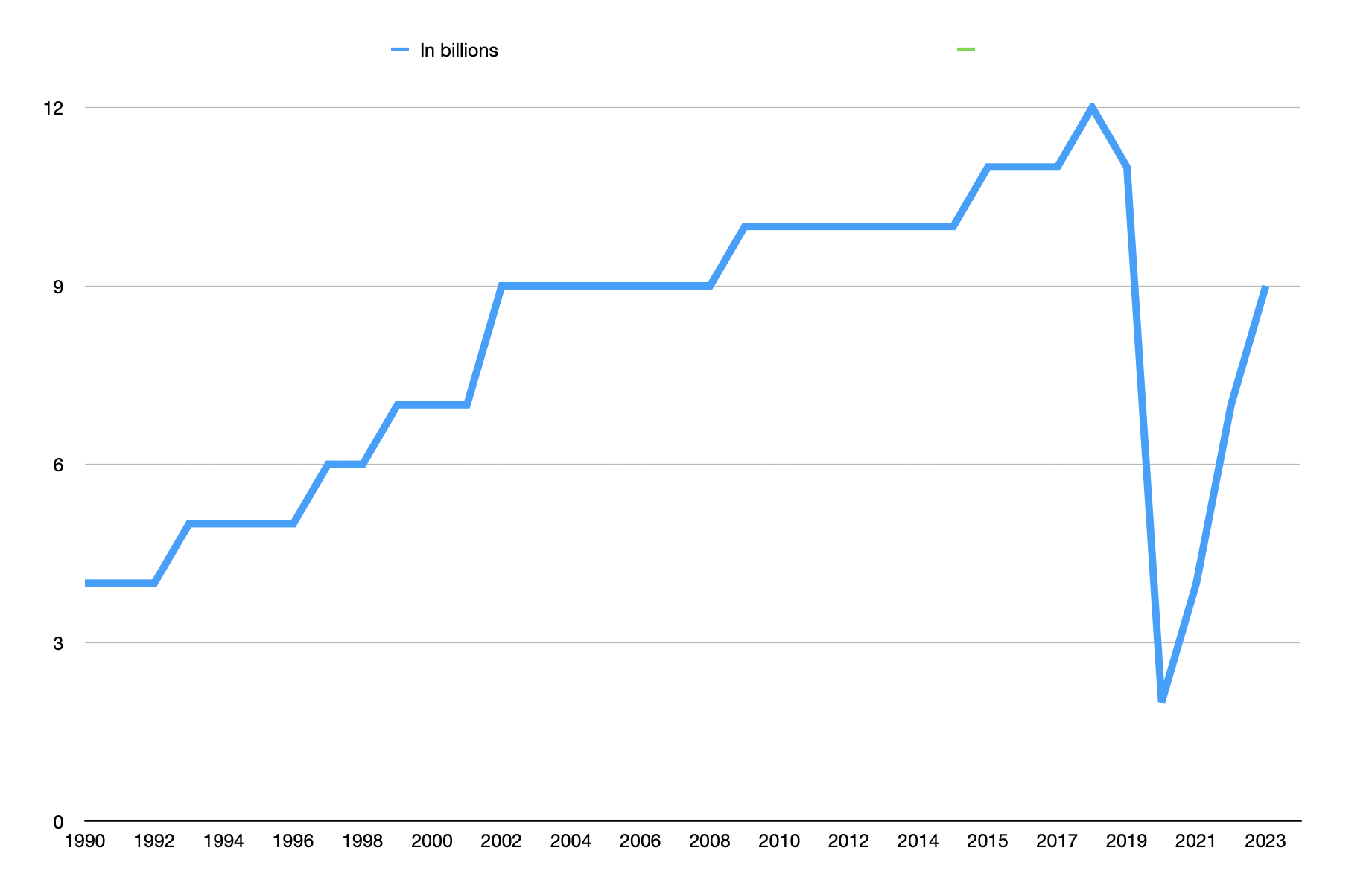 Here are some charts I found and adapted, showing how the box office has evolved since 1990. As you can see box office really starts to climb after the Harry Potter/Lord of the Rings franchises kick off the boom era.