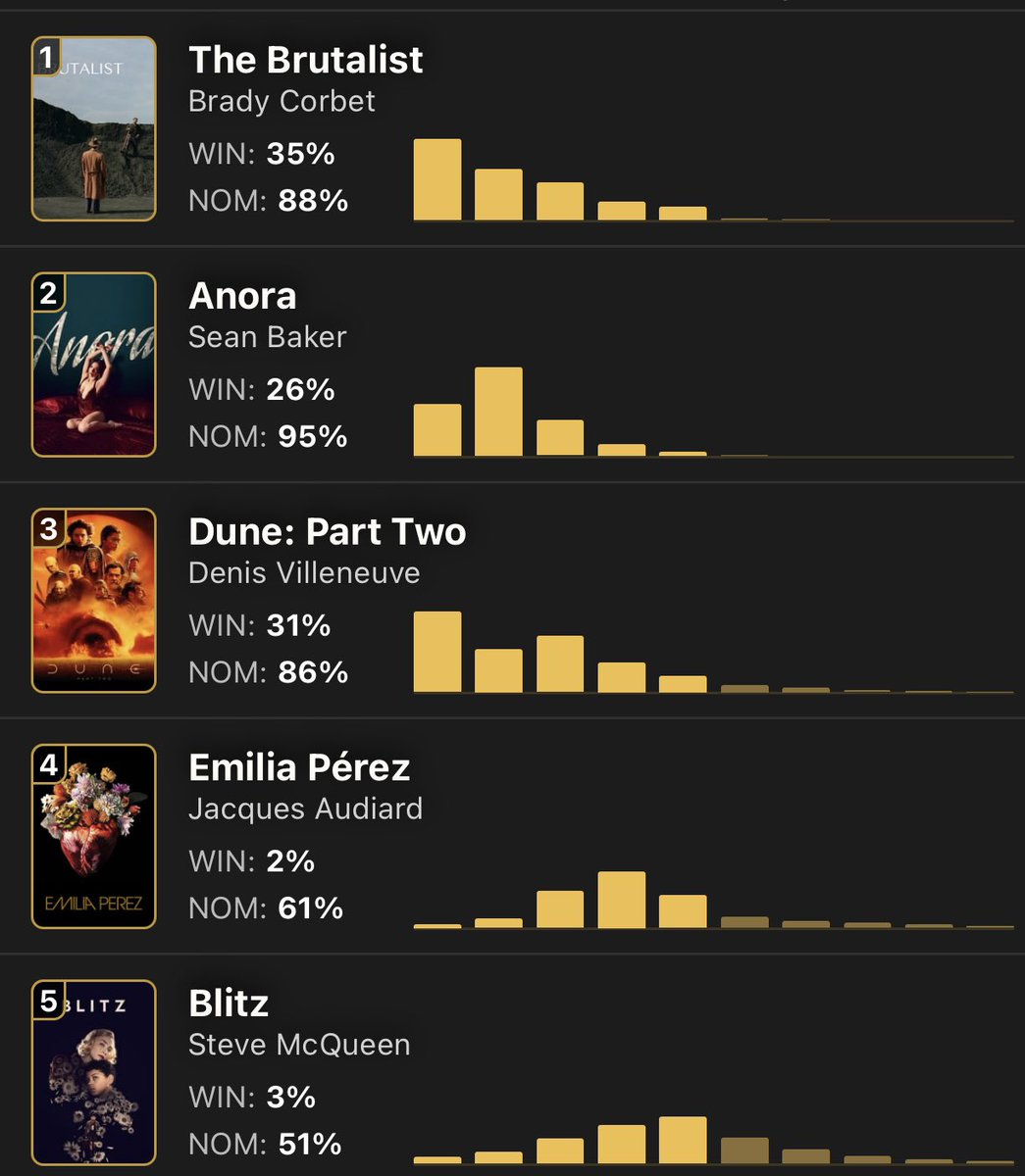 If I had to make a call regarding who has the edge currently between the two, it would be Sean Baker for a few reasons. First and foremost, Baker (and Madison to an extent) define what that film truly is, and if it goes all the way in Best Picture in a steamrolling fashion, it would probably sweep the above-the-line Oscars (think Pic, Dir, Actress, Screenplay, etc.). Similar to Chloe Zhao for Nomadland, Baker also edited the project, and it is clear that he has a very personal correlation to the project as a whole. However, Corbet having directed the “cinematic achievement of the year” on a budget that is less than the average indie is something that might be too difficult to ignore for industry voters, and this race will start to take shape in the critics’ awards. There are many more narratives that can manifest; Steve McQueen or RaMell Ross making history is one of them, as is Ridley Scott receiving his first, or even Eastwood taking his third directing Oscar. Nevertheless, the race has a lot of potential, but as of this week, it seems a consensus is forming.