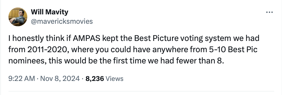 As I’ve been saying (I’m really getting tired of saying I told you so) there should only be 5 right now since Hollywood is having a moment. There should not be ten. But if there is ten, Inside Out 2 should be in the conversation to be among the ten. It’s absurd to see it any other way. Think about the business of Hollywood.