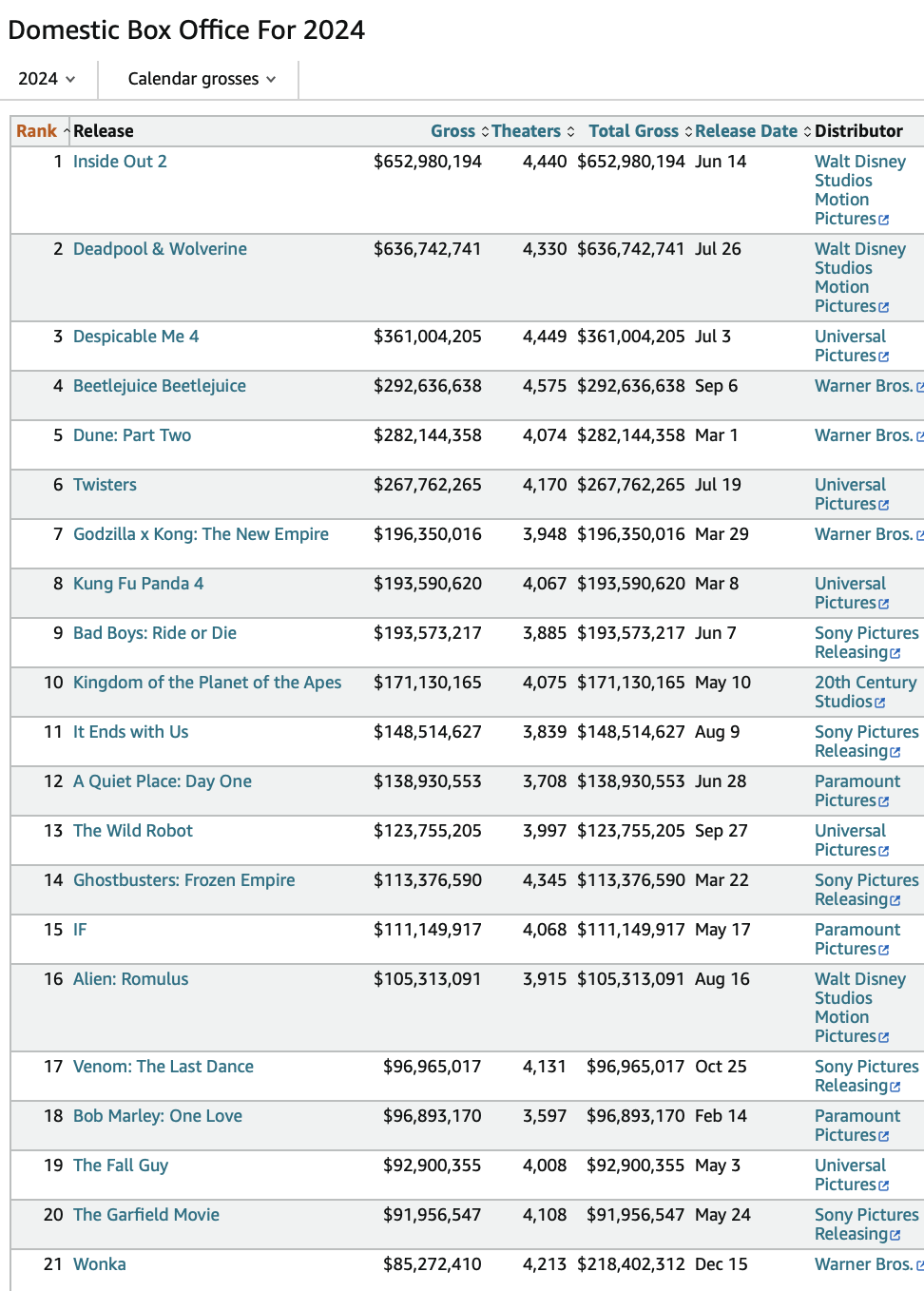 It beat Dune Part Two. It beat Deadpool & Wolverine.