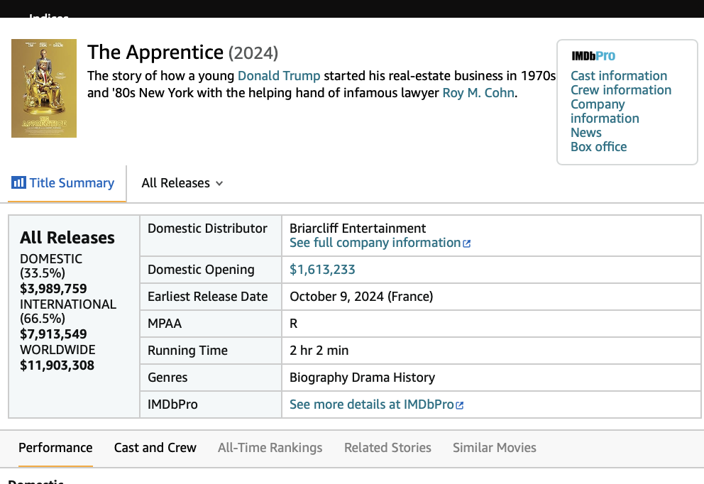 I remember hearing that Julie Huntsinger of the Telluride Film Festival was worried that when they played The Apprentice MAGA extremists were going to storm the town and wreak havoc. I thought to myself, they should be so lucky for ANYONE to care that much about the movie or the film festival.