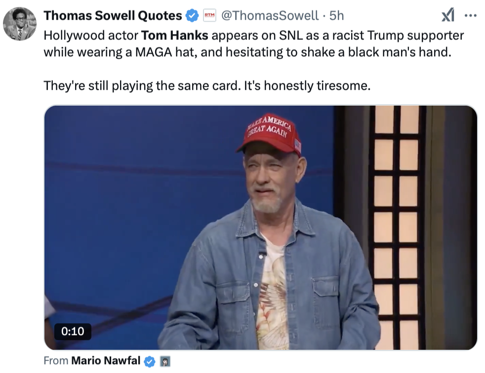 And it’s why Tom Hanks felt emboldened to mock Trump supporters as racists on Saturday Night Live’s 50th anniversary. It was all about class and how the rich abuse their power by calling those who are not in their class “racists” and sending the message that, despite the election, they are still not invited into “their” culture.