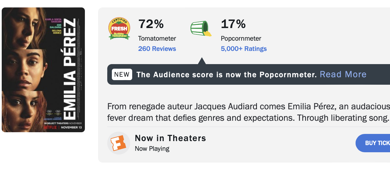 The films that won have been Black Panther, CODA, and Hidden Figures. But they also picked The Trial of the Chicago 7 and Oppenheimer. So, there is also a strain that runs through them, and they will still pick movies with lots of actors just for that reason, though it’s uncommon. Emilia Perez was the movie that was perfect for them in every way. It would be the “standing ovation” movie because it had a big cast of mostly people of color and the first transgender nominee.