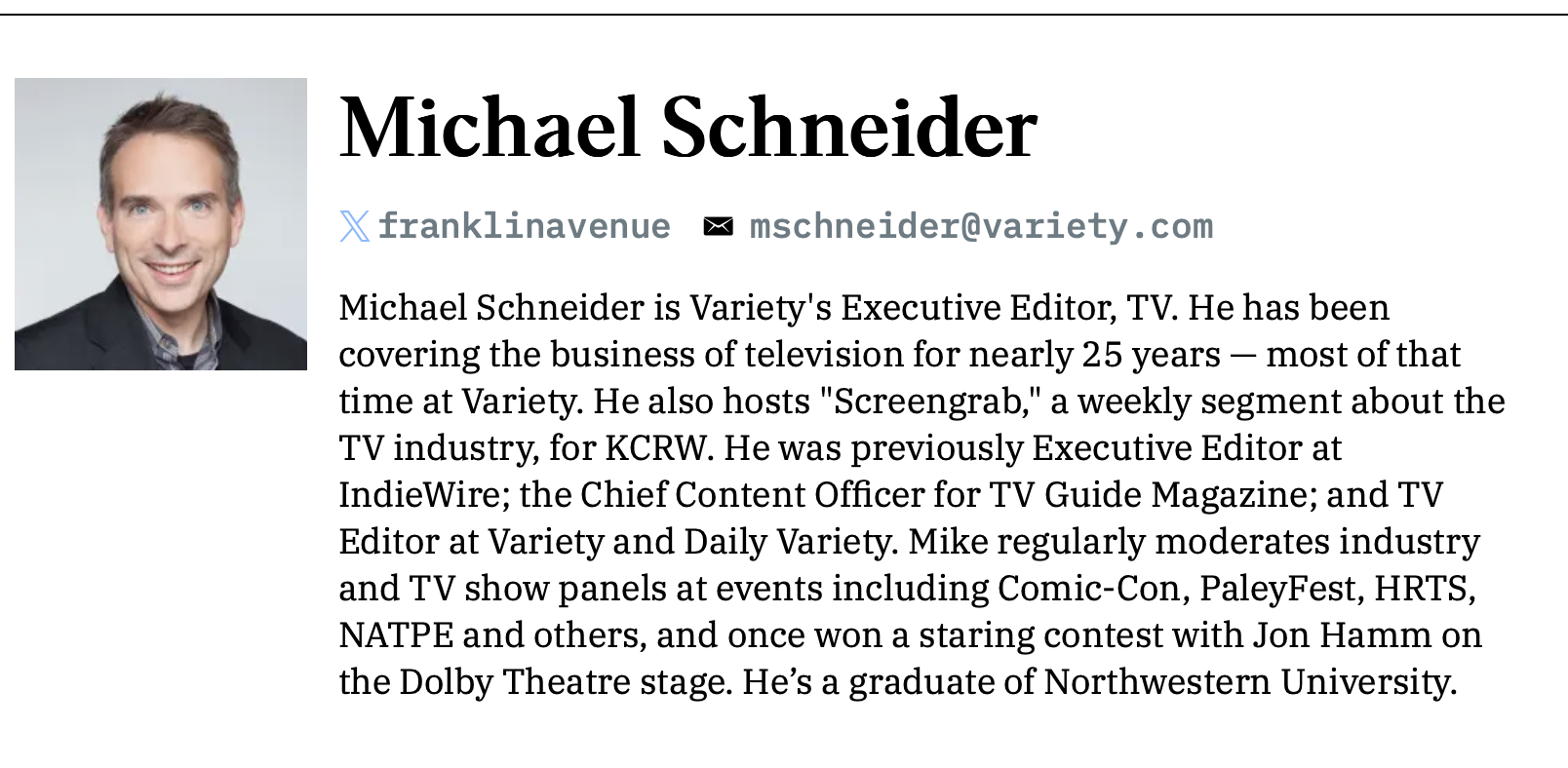 I’m sorry to say, but Michael Schneider should be fired from Variety for committing the crime against hyperbole.