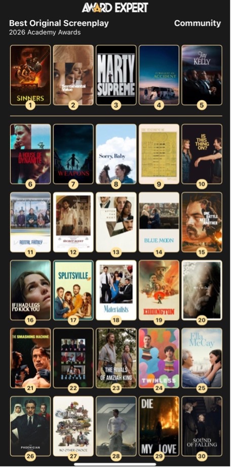 Looking at the community’s predictions listed above, there does seem to be a clear consensus top four that the vast majority of people (over 80% of users) are collectively predicting. Coogler’s Sinners, Trier’s Sentimental Value, Bronstein and Safdie’s Marty Supreme, and Panahi’s It Was Just An Accident can be defined as fairly likely nominees in this said field. Whether or not this becomes a coronation run for Ryan Coogler (or a consolation prize for Sinners) remains to be seen, as he faces competition specifically from international films, not only from Trier, but from Panahi, who many believe could be a dark horse contender to win this category.