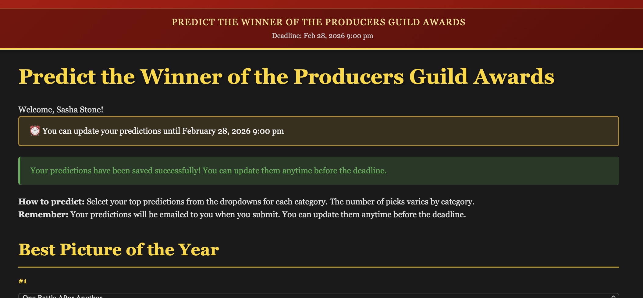 So why am I going with Sinners? My reasoning is that after the BAFTA, it caused a bit of a culture quake that snapped people out of their mass formation psychosis. In other words, I’d be following the trajectory for other last-minute winners that took the SAG and the ACE, like Parasite. But my gut tells me that’s wrong and One Battle will clean sweep this weekend.