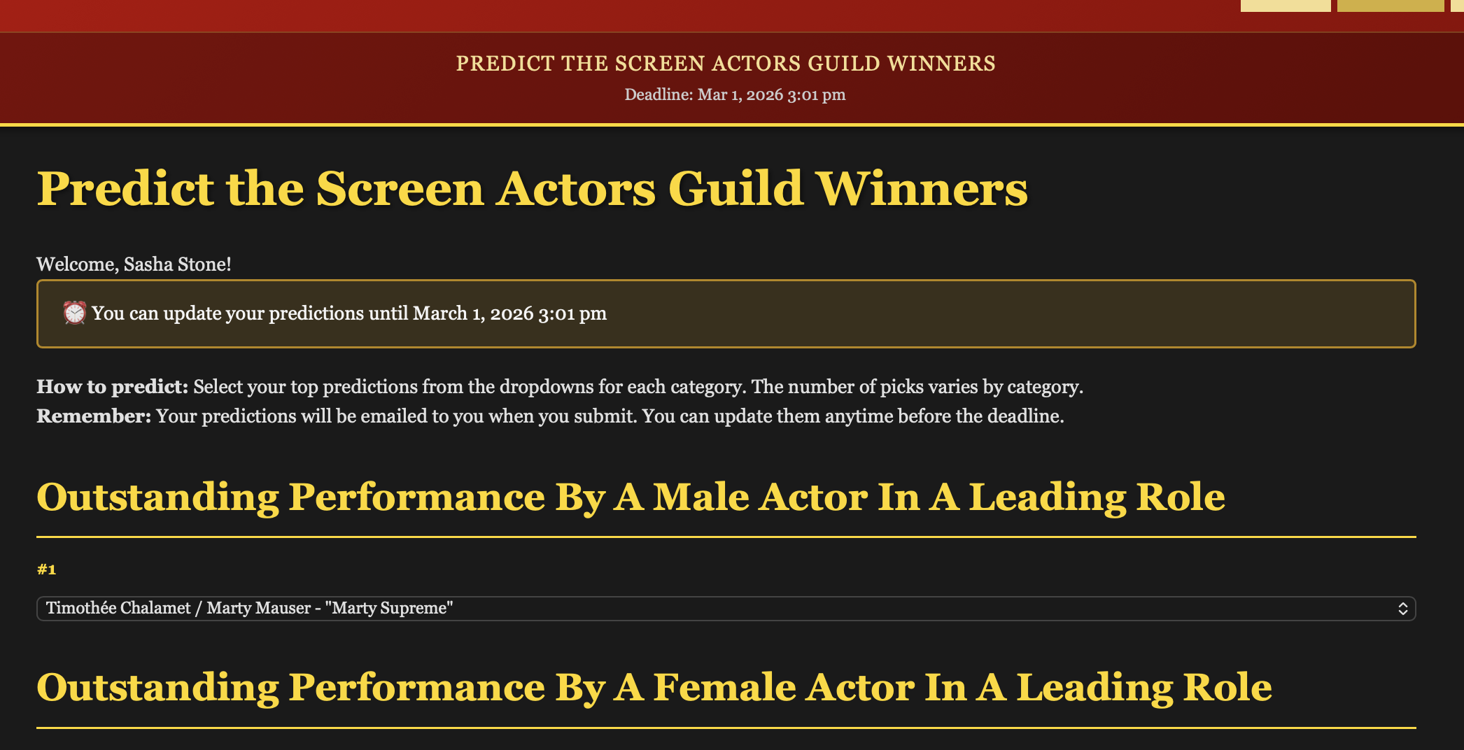 In the meantime, we will offer up our SAG predictions here and our ACE predictions as well. First up, make sure you enter our contests: